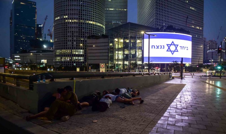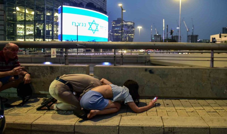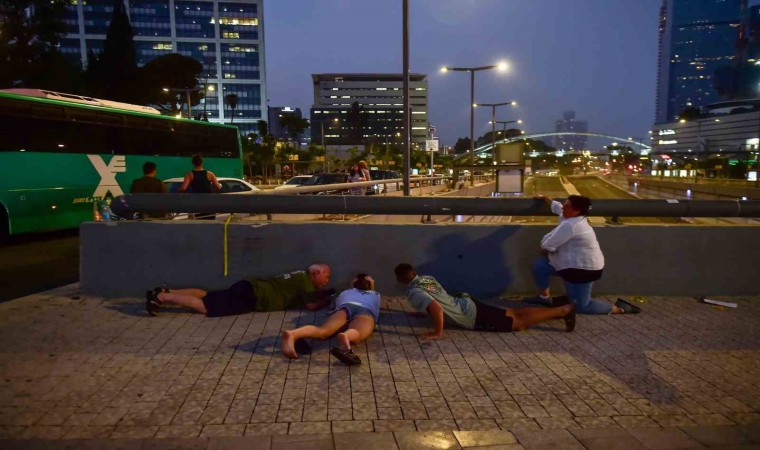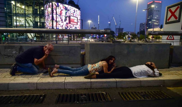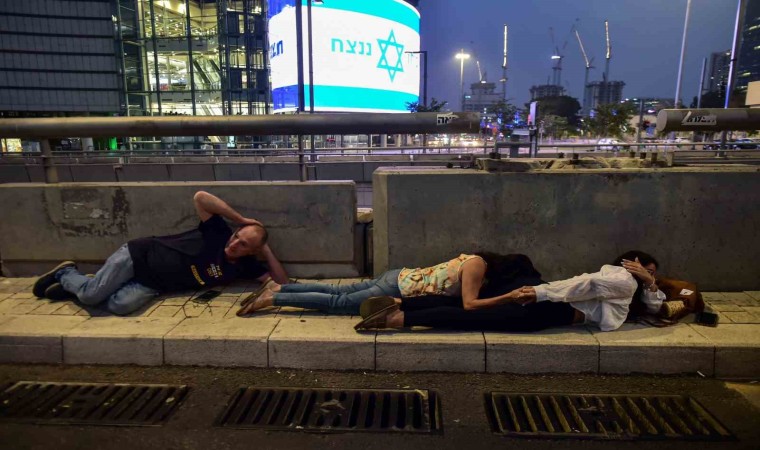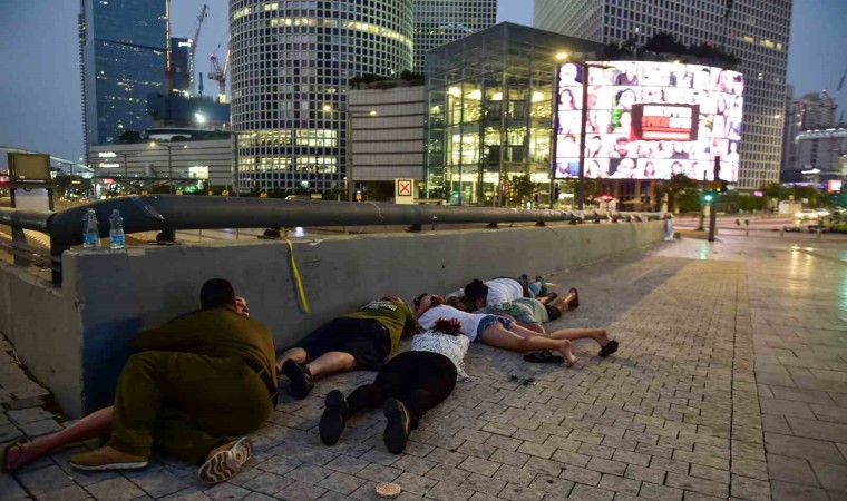 İsrail-Filistin arasında 7 Ekim’de başlayan çatışmalar 22’nci gününde devam ediyor. Akşam saatlerinde İsrail’in başkenti Tel Aviv’e çok sayıda roket saldırısı düzenlendi. Roket saldırısının ardından şehirde sirenlerin çalmasıyla siviller büyük korku yaşadı. Yolda yürüyen ve araçlarından inen çok sayıda sivil yol kenarında bulunan beton bariyerlerin yanına yatarak korunmaya çalıştı. Atılan roketler, Demir Kubbe’nin devreye girmesiyle havada imha edildi.