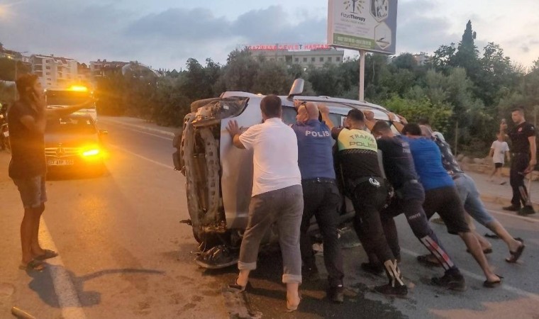 Antalya’nın Gazipaşa ilçesinde sürücüsünün direksiyon hakimiyetini kaybettiği otomobil, önce yol kenarındaki tel çitlere çarptı, ardından devrilerek takla attı. Kazada, otomobil sürücü yaralandı.