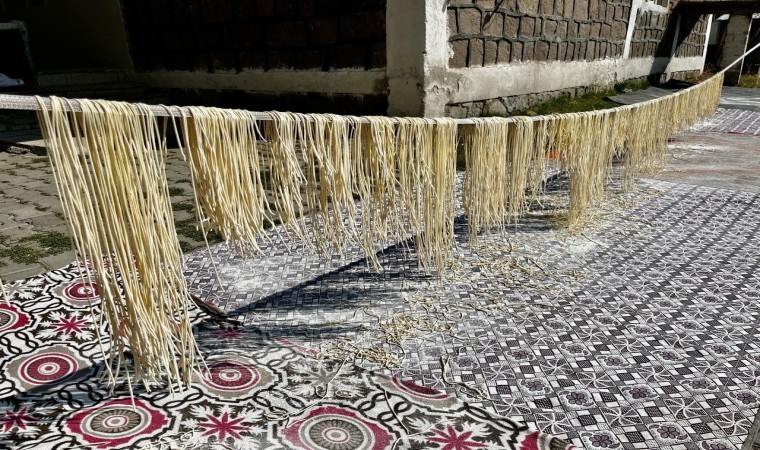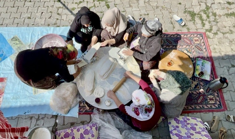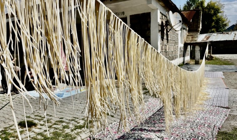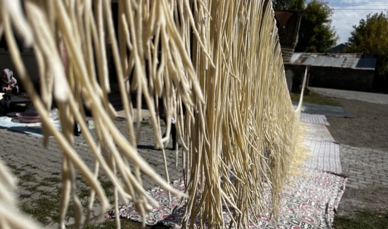 Ağrı’da bir araya gelen kadınlar asırlık geleneklerden olan kışlık erişte kesimi için kolları sıvadı.