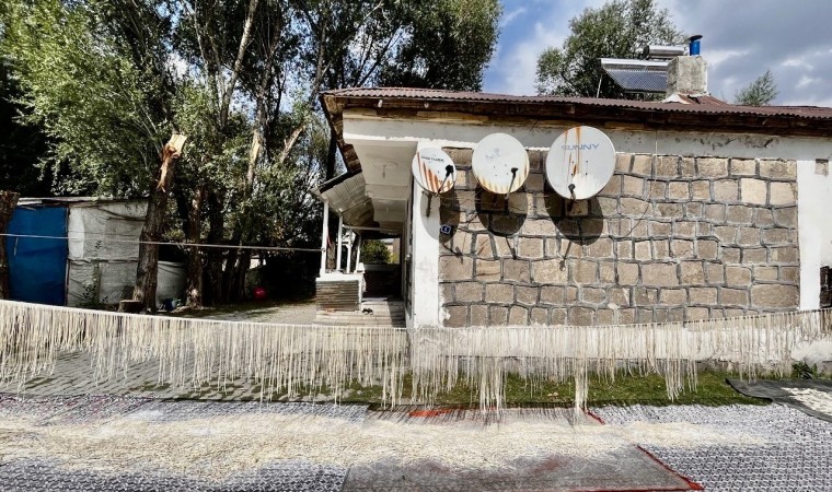 Ağrı’nın merkeze bağlı 100. Yıl Mahallesi’nde yaşayan kadınlar kış sofralarının vazgeçilmez lezzetlerinden olan ve bin bir zahmetle hazırlanan erişteler için hazırlıklara başladı. Asırlık gelenekler arasında olan ve lezzetiyle kış sofralarını süsleyen erişte kesimi için her gün birinin evinde toplanan kadınlar, bahçelerde kurdukları bir alanda bir yandan erişte hamuru yoğururken, bir yandan da kestikleri erişteleri metrelerce uzunluktaki iplere dizerek kurutuyor. Kurutma işleminin ardından toplanan erişteler, tandır ateşinde kavrulduktan sonra paketlenip kışlık yemek yapımına hazır hale getiriliyor. Saatlerce süren zahmetli ve yorucu işlemlerin ardından masalardan kalkan kadınlar, koyu bir sohbet ve semaver çayı eşliğinde günü noktalıyor.
