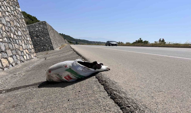 Hatay’da telef olan buzağının çuval içerisinde konup yol kenarına atılması tepkiye neden oldu.