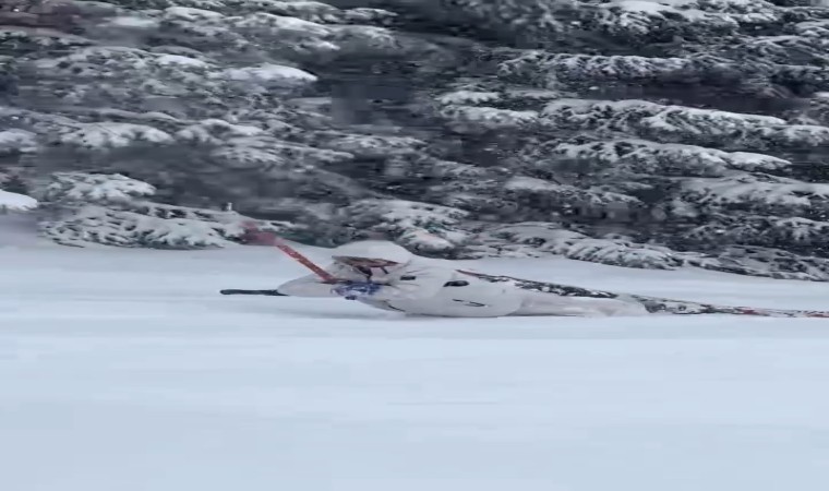 Türkiye’nin gözde kış turizmlerinin başında gelen Uludağ’a gelen tatilci telesiyej ile pistin zirvesine çıkmak istedi. O sırada dengesini kaybeden tatilci yere düşünce ortaya güldüren görüntüler çıktı. Tatilci pistin zirvesine sürünerek çıkarken o anlar başka bir tatilci tarafından kaydedildi.