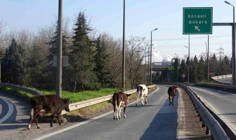 İlginç olay, TEM Otoyolu Dilovası ilçesinde meydana geldi. Otlamaları için bırakılan 4 büyükbaş hayvan, TEM otoyolu Dilovası gişelerden girince kendilerini yolun ortasında buldu. Geri dönmeyen hayvanlar Sakarya-Ankara istikametine ilerlemeye başladı.