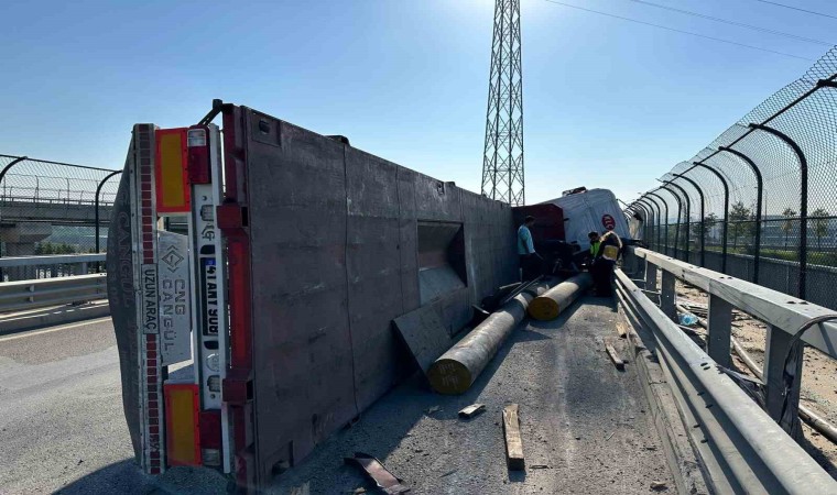 Kocaeli’nin Çayırova ilçesinde demir yüklü tır, virajı alamayarak devrildi. Demirler yola savrulurken, tır sürücüsü yaralandı.