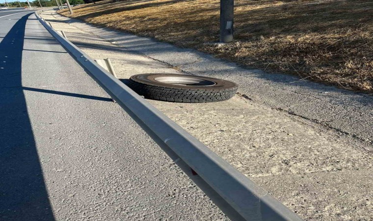 Silivri’de TEM Otoyolu’nda bir kamyonetten kopan lastik, kilometrelerce yolculuk yaptı. Herhangi bir kazaya neden olmayan lastiğin tehlikeli yolculuğu, bir sürücü tarafından cep telefonu kamerası ile kaydedildi.