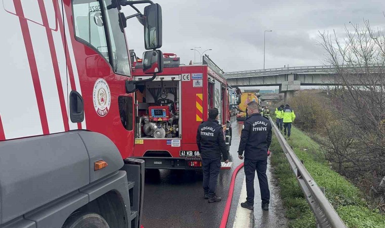 Kocaeli’de beton katkısı taşıyan tankerin balatası alev aldı.