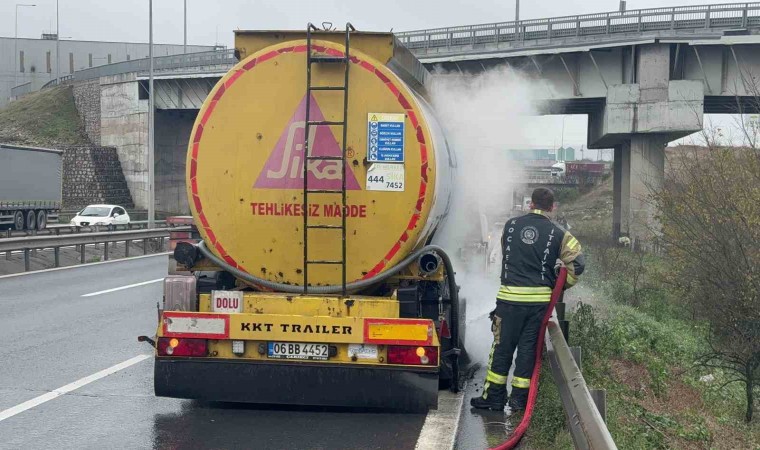 Kocaeli’nin Dilovası ilçesinde Anadolu Otoyolu Ankara istikametinde seyir halinde olan 06 BB 4452 plakalı tırın balatası yandı. Tırın tekerleri de patlayarak alev aldı. Tır sürücüsü T.A. dumanları fark edip araçta bulunan yangın tüpü ile olaya müdahale etti. Çevredekilerin ihbarı üzerine olay yerine sevk edilen itfaiye ekipleri yangını kısa süre içinde söndürdü.