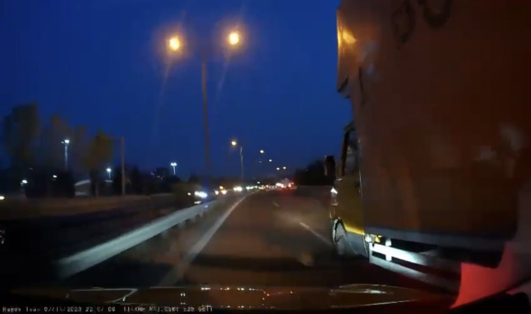 Sürücü Aktaş, en sol şeritte önünde ilerleyen kamyonete selektör yaparak yol istedi. Kamyonet şoförü sağ şeride geçerek yol verdi fakat bir anda taksiyi bariyerlere doğru sıkıştırmaya çalıştı. Kamyonetten kurtulan taksi şoförü yoluna devam ederken, kısa süre sonra kamyonet şoförü önünde ilerleyen taksiye hızla çarptı. Neye uğradığını şaşıran Aktaş ve yolcular büyük panik yaşarken, olayın şokuyla yabancı uyruklu kadın yolcu ise araçta baygınlık geçirdi.