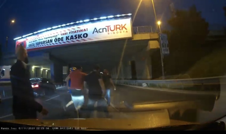 TEM Otoyolu Okmeydanı bağlantı yolunda yol istemek için selektör yapan taksiciye kamyonet sürücüsü aracıyla çarptı. Taksici tutanak tutmak için araçtan indiğinde saldırıya uğradı. Korku dolu anlar kameralara yansırken, taksici saldırganlardan şikayetçi oldu.