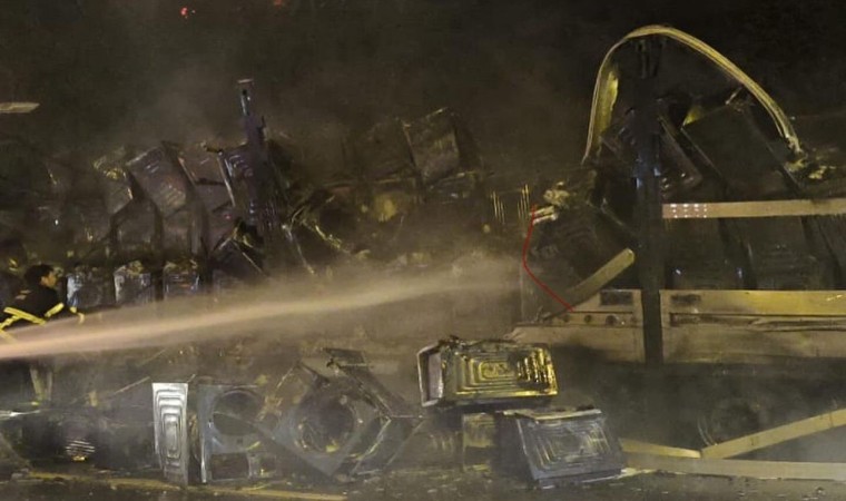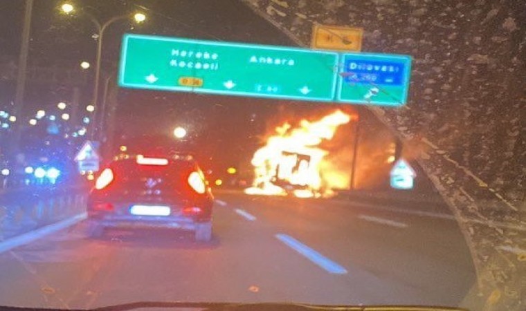 TEM Otoyolu’nun Kocaeli geçişinde beyaz eşya yüklü tırın dorsesi alev alev yandı.