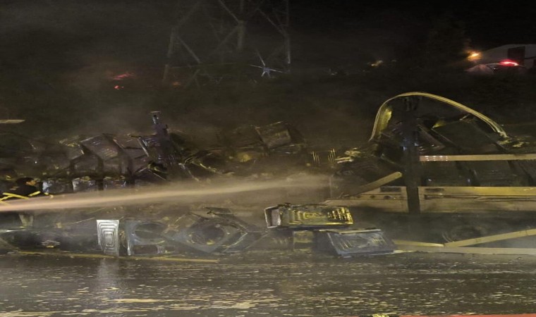 Dorseden geriye demir yığını kalırken, beyaz eşyalar kullanılamaz hale geldi. Yangın sebebiyle otoyolun Ankara istikametinde tek şeritten kontrollü araç geçişler sağlanıyor.