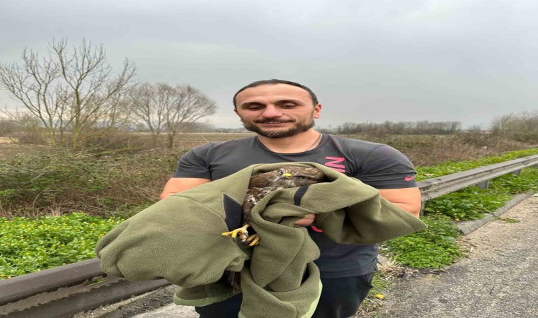 TEM Otoyolu Düzce geçişinde yol ortasında duran şahin vatandaşlar tarafından kurtarıldı. Şahini montlarına saran hayvanseverler, Düzce Doğa Koruma ve Milli Parklar Şube Müdürlüğü’ne teslim etti.