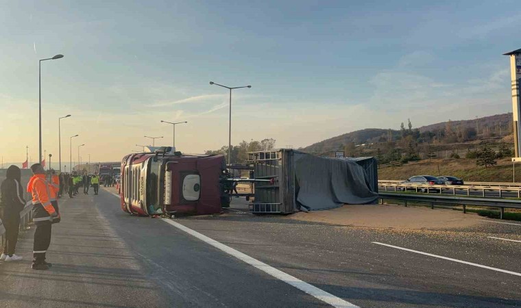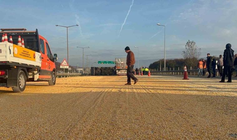 TEM Otoyolu’nun Bolu geçişinde mısır yüklü tır devrildi. Maddi hasarlı atlatılan kazada Otoyolun Ankara istikameti trafiğe kapatıldı.