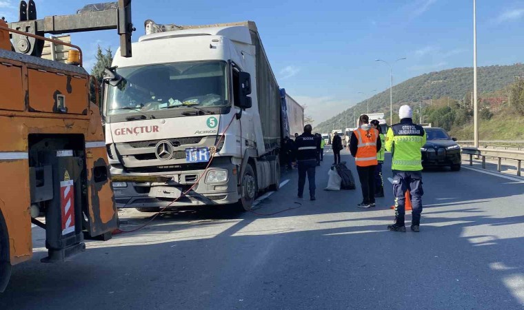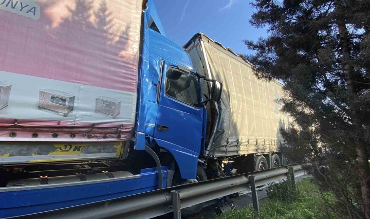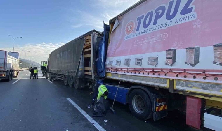 TEM Otoyolu’nun Kocaeli geçişinde tır, emniyet şeridindeki arızalı tıra çarptı. Araçta sıkışan sürücü itfaiye ekiplerince çıkarıldı.