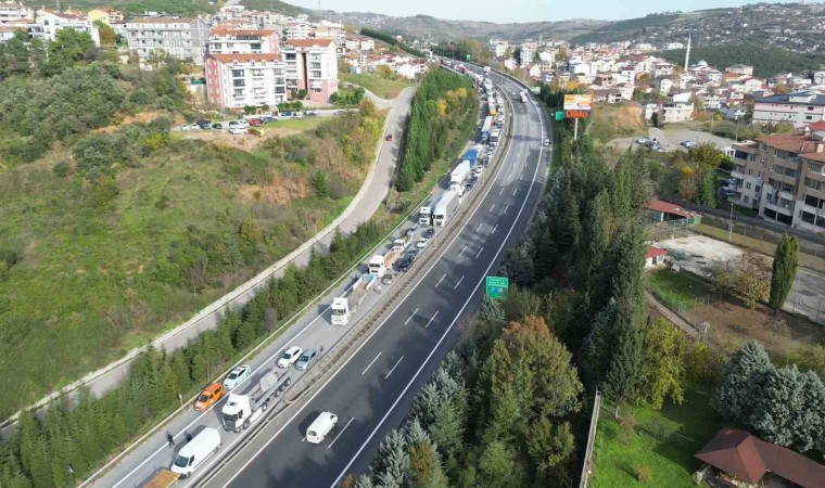 Öte yandan, Tem Otoyolu’nda oluşan araç kuyruğu dron ile görüntülendi.
