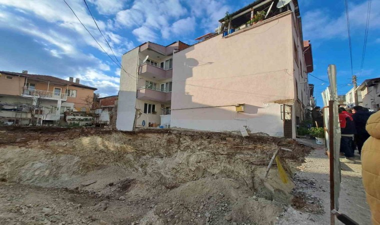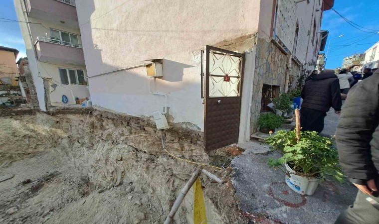 Balıkesir’de bir inşaatın temel kazımı esnasında yanında bulunan apartmanın giriş bölümünde çökme meydana geldi.