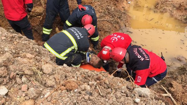 Temel kazısında toprak altında kalan inşaat işçisini itfaiye ve mesai arkadaşları kurtardı