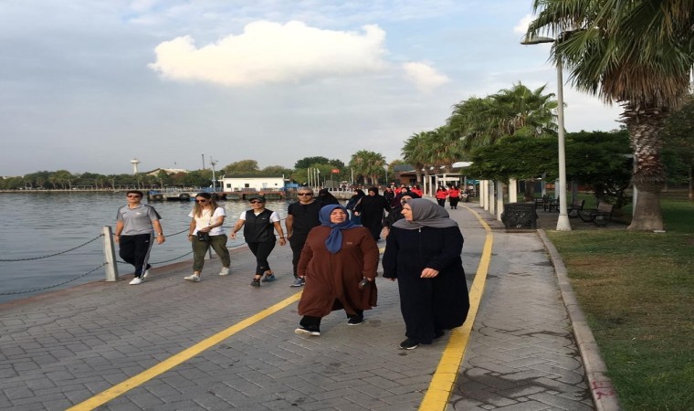 Körfez Tütünçiftlik Sahili boyunca yürüyüş yapan vatandaşlar, hem spor yaptı hem de temiz havanın tadını çıkardı.