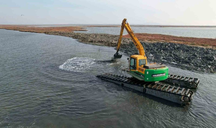 Körfez’in temizlenmesi için tarihinin en büyük yatırımlarından birini hayata geçiren İzmir Büyükşehir Belediyesi, Gediz Nehri’nin denizle buluştuğu noktalarda da temizlik çalışmalarına başladı. İZSU Genel Müdürlüğü ekipleri Foça’da amfibik makineyle nehirden taşınan malzemeleri temizliyor.