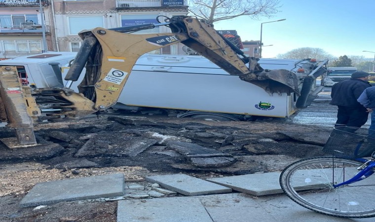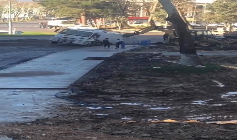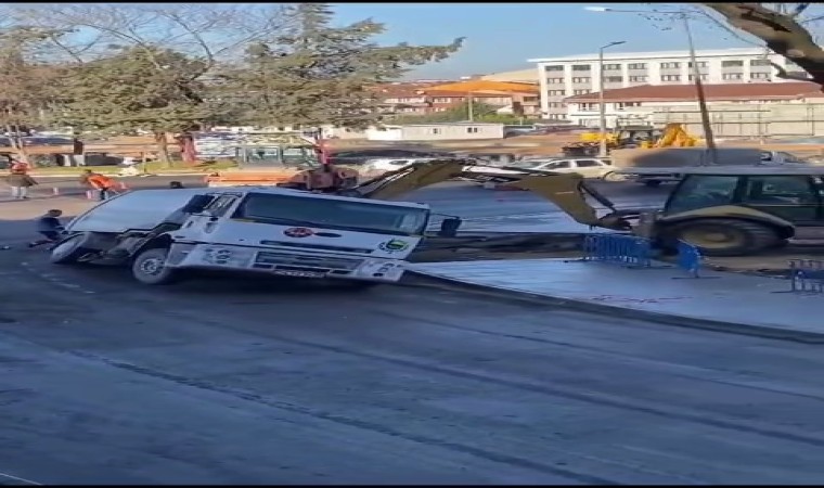 Olay İnegöl ilçesi Cuma Mahallesi Hastane Caddesi üzerinde meydana geldi. Kazı çalışması yapılan alanın yanından geçen temizlik kamyonunun ağırlığını kaldıramayan yol çöktü. Arka tekerleri çukurda kalan kamyon iş makineleri ve vinç yardımı ile bulunduğu yerden çıkarıldı. Yaşanan olayda yaralanan olmadı.