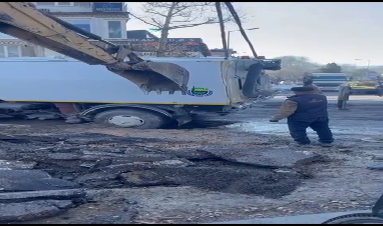Bursa’nın İnegöl ilçesinde temizlik kamyonunun geçişi esnasında yol çöktü. Arka tekerleri çukurda kalan kamyon vinç yardımı ile kurtarıldı.