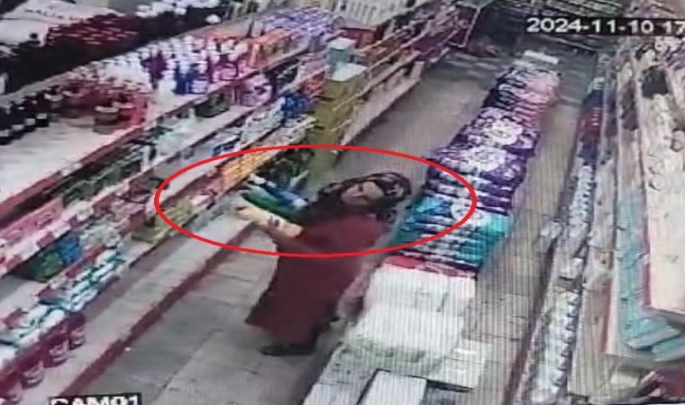 Diyarbakır’ın Bağlar ilçesinde bir marketten temizlik malzemesi çalan kadın güvenlik kamerasına yansıdı.