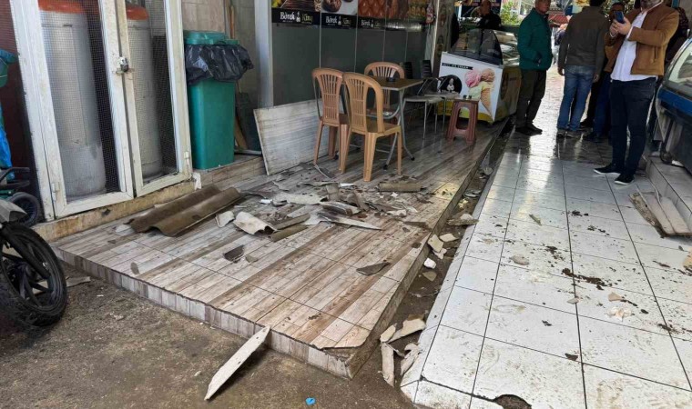 Antalya’nın Gazipaşa ilçesi Balıkçılar Çarşısı’nda temizlik yaparken gördüğü deliği kapatmak için tavana çıkan esnaf, tavanın kırılması sonucu 5 metre yükseklikten beton zemine düşerek yaralandı. O anlar güvenlik kamerasına yansırken, yaralanan esnaf hastanede tedavi altına alındı.