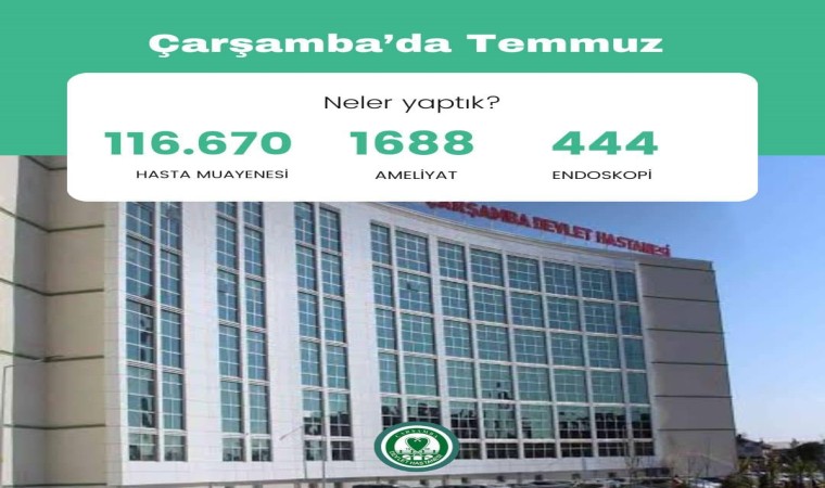 Çarşamba Devlet Hastanesi, Temmuz ayı istatistik verilerini paylaştı. Buna göre Temmuz ayı boyunca toplam 116 bin 670 hasta muayene edildi, bin 688 ameliyat gerçekleştirildi ve 444 endoskopi işlemi yapıldı.