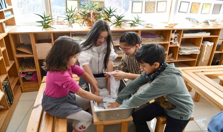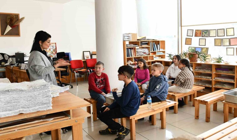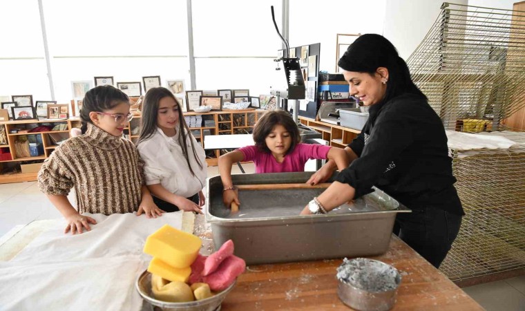 “Yarıyıl Tatilinde Çocuklar İçin Doğa Dostu Atölyeler” kapsamında Tepebaşı Belediyesi Geri Dönüşüm Atölyesi’ni ziyaret eden çocuklara, atık kağıtların sanata dönüşümünün nasıl olduğu öğretildi. Atölye öğreticileri tarafından, eski bir zanaat olan kağıt yapımının kendine özel dokusu ve çeşitliliği ile ortaya çıkan tasarımlarla ilgili bilgiler verildi. Ayrıca çocuklara, yoğun emekle ortaya çıkartılan ürünlerin yapımı uygulamalı olarak da gösterildi.