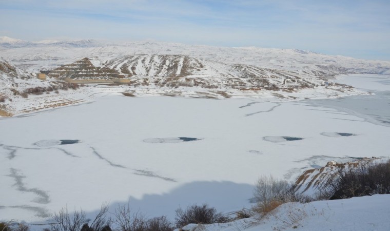 Erzincan’ın Tercan ilçesinde bulunan 8 dönüm alana sahip Tercan Baraj Gölü etkili olan aşırı soğuklardan dolayı dondu.