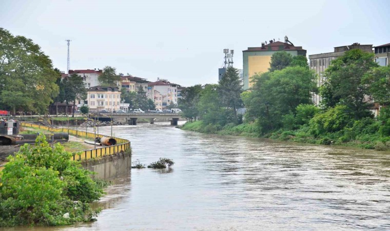 Samsun’un Terme ilçesinde etkili olan sağanak sonrası Terme Çayı taşma noktasına geldi, vatandaşları tedirgin etti.