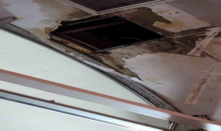 Kırşehir’de, şiddetli yağış ve rüzgarla birlikte Şehirler Arası Otobüs Terminali’nde göçük meydana gelirken, terminal esnafı da göçükten akan sulara kovalarla müdahale etti.