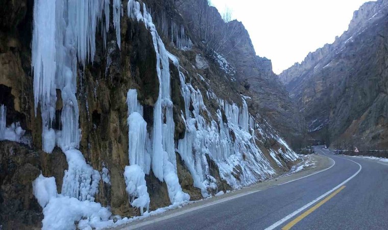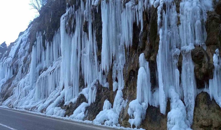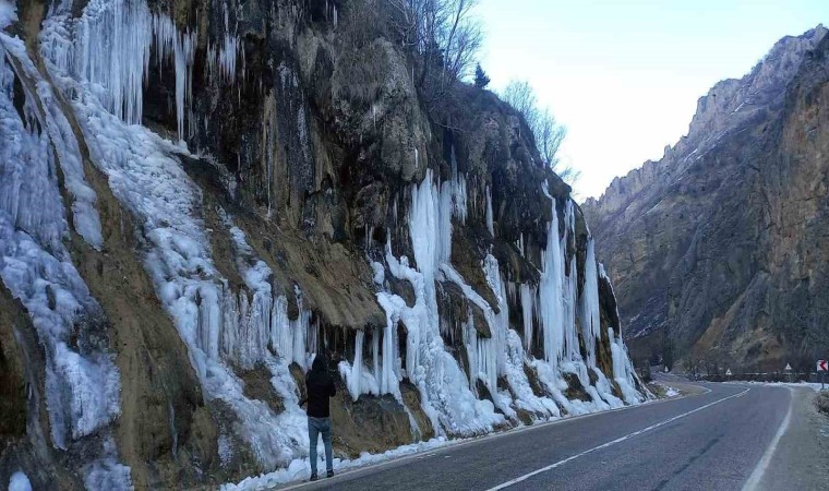 Tunceli-Erzincan karayolunda bulunan ve halk arasında “Ağlayan Kayalar” olarak adlandırılan kayalar, hava sıcaklığının eksi 20 derecelere kadar düşmesinin ardından buz tuttu.