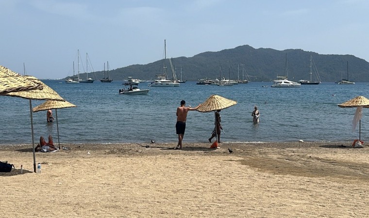 Muğla’nın Marmaris ilçesinde termometreler 46 derece sıcaklığı gösterince, vatandaşlar soluğu denizde aldı.