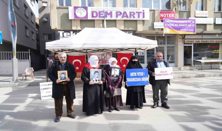 Muş’ta çocuklarını terör örgütü PKK’nın pençesinden kurtarmak isteyen ailelerin DEM Parti il binası önündeki eylemi devam ediyor.