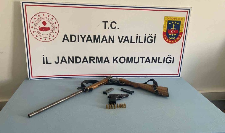 Şüphelinin ikametinde yapılan aramada 1 adet ruhsatsız tabanca, 16 adet fişek, 1 adet şarjör, 1 adet ruhsatsız av tüfeği ele geçirildi.