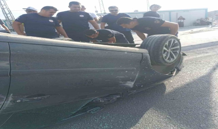 Hatay’da takla atarak ters dönen otomobilin sürücüsü yaralandı.