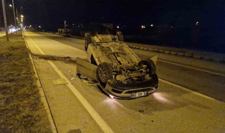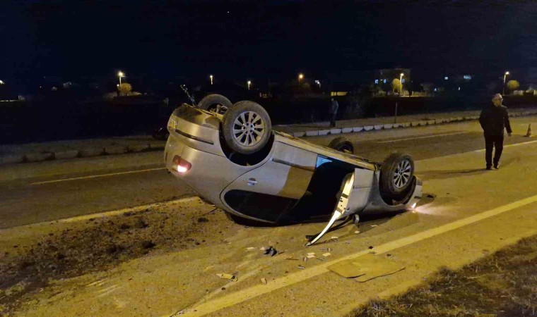 Çorum’un Alaca ilçesinde orta refüje çarparak ters dönen otomobilin sürücüsü yara almadan kurtuldu.
