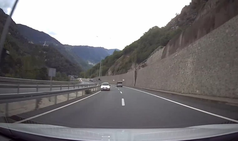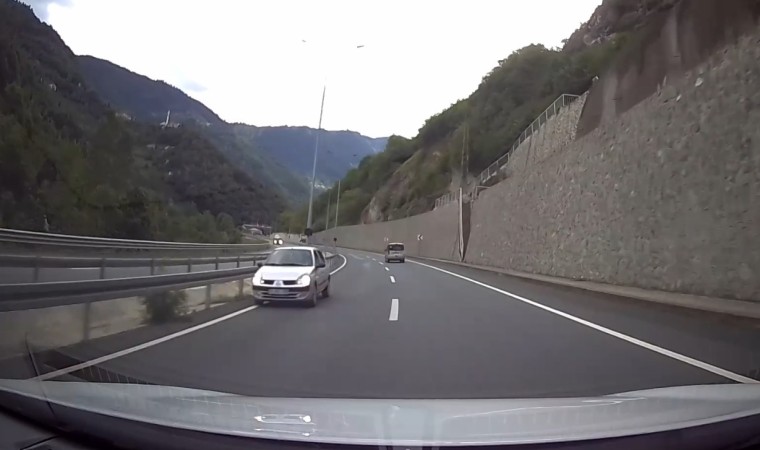 Gümüşhane-Trabzon karayolunda ters yönde hareket eden otomobilin faciaya davetiye çıkarttığı anlar başka bir aracın kamerasına yansıdı.