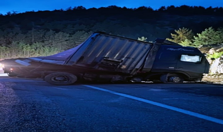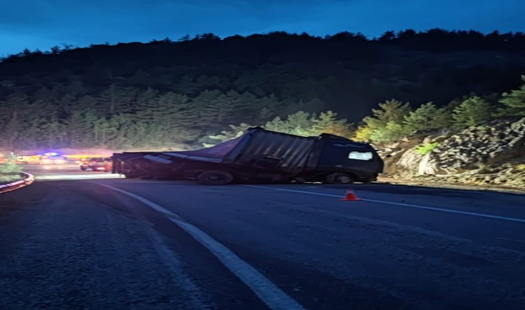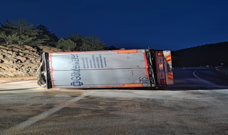Karayolunda ulaşım bir süre kapanırken, ekiplerin yolda temizlik yapıp tırı çekmesinin ardından trafik akışı kontrollü olarak sağlanmaya başladı.