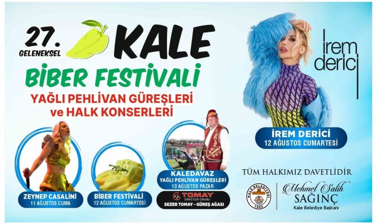 Kale Belediye Başkanı Mehmet Salih Sağınç, “27’ncisini düzenleyeceğimiz Kale Biber Festivalimiz, KaleDavaz Yağlı Pehlivan Güreşleri, 11-12 ve 13 Ağustos 2023 tarihlerinde gerçekleştireceğiz. Kortej yürüyüşümüz ile başlayacak olan festivalimizde, aşure hayrımız olacak akşamında ise konserlerimiz olacak. İkinci günüde çok önemli coğrafi işaretli Kale biberimizin yarışmaları olacak. Üçüncü gün ise 27’ncisini düzenleyecek olduğumuz KaleDavaz Yağlı Pehlivan Güreşlerini Recep Tayyip Erdoğan Er Meydanında, Türkiye’nin her yöresinden katılacak 500’ün üzerinde pehlivanımızla gerçekleştireceğiz. Tüm vatandaşlarımızı festivalimize bekliyoruz” dedi.