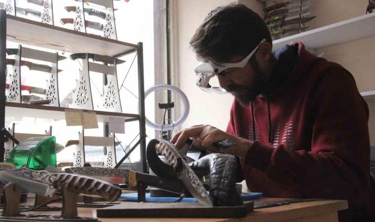 Sivas’ta yaşayan ve 4’ncü kuşak bıçakçılık yapan İbrahim Göçeri, tescilli Sivas bıçağına farklı bir görünüm kazandırdı. İşlenmesi zor olan çeliği süsleyen bıçak ustası, koleksiyonerlerin taleplerine yetişmekte zorlanıyor.