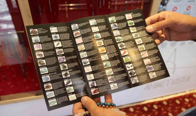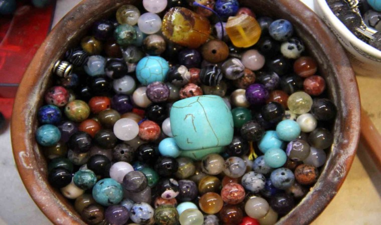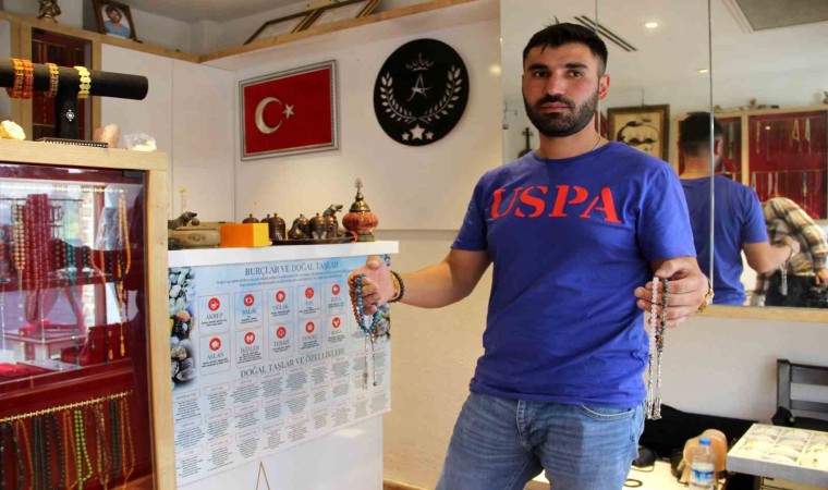 Tespih ustası Ahmet Karakaya, doğal taşlardan isteğe bağlı ürünler hazırlatıp müşteriyle buluşturduğundan bahsederek, “Doğal taşların birçok özelliği var, hastalıklara ve burçlara göre doğal taşlarımız var. Burada burçlara ve hastalıklara uygun taşları gösteren bir tablomuz var, müşterilerimiz bu tablodan kendilerine uygun ve hoşuna gittikleri taşları seçiyorlar. Taşlardan tespih, bileklik, kolye ve isteğe bağlı çeşitli ürünler hazırlıyoruz” dedi.