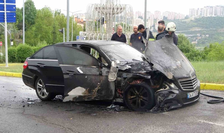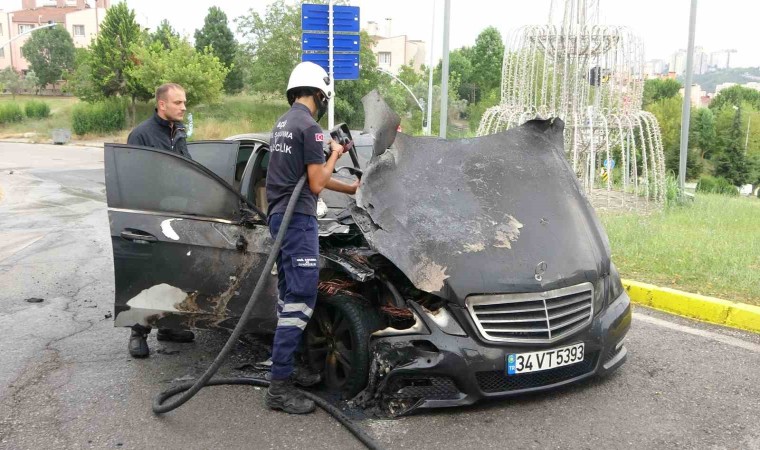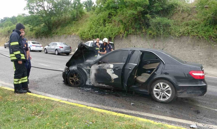 Kocaeli’nin İzmit ilçesinde arıza sebebiyle test sürüşüne çıkartılan lüks otomobilde seyir halindeyken yangın çıktı. Alev alev yanan otomobil kullanılamaz hale geldi.