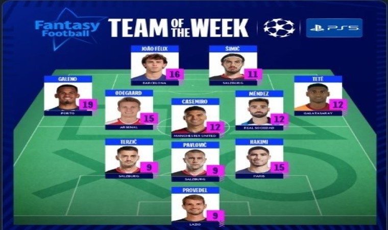 UEFA Şampiyonlar Ligi’nde ilk haftanın sona ermesiyle haftanın 11’i de belli oldu. Galatasaray’ın Brezilyalı futbolcusu Tete de haftanın kadrosunda kendine yer buldu. 23 yaşındaki futbolcu, Kopenhag karşısında ikinci yarıda oyuna girip 1 gol, 1 asistlik katkı sağlamıştı.
