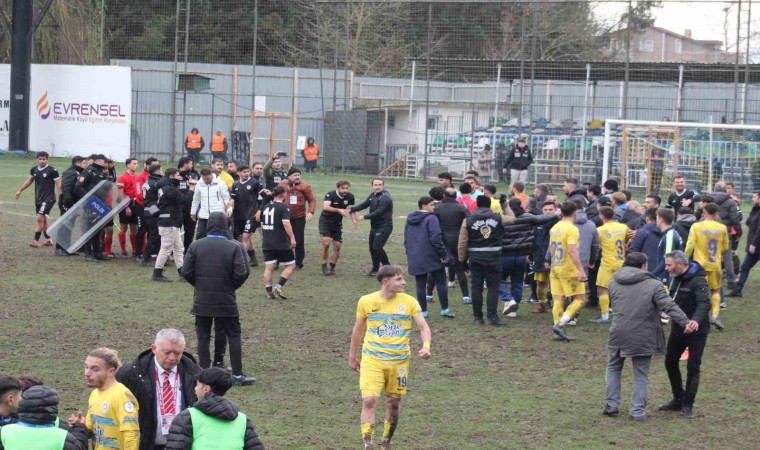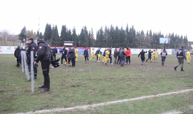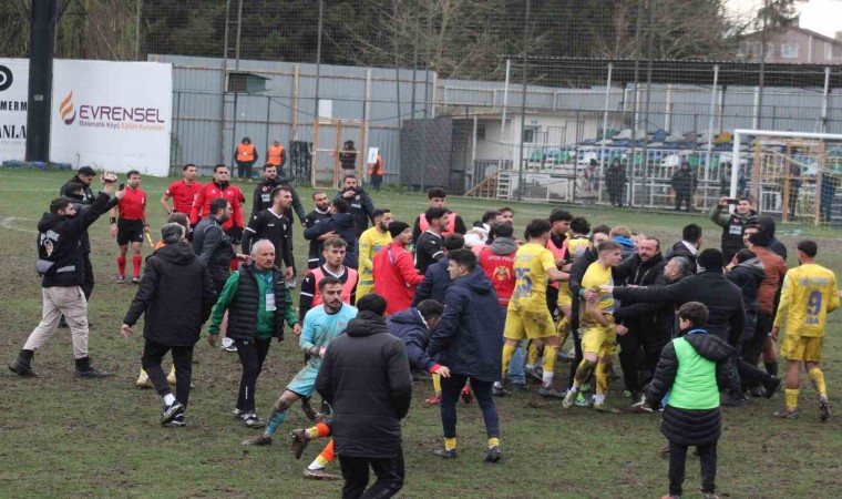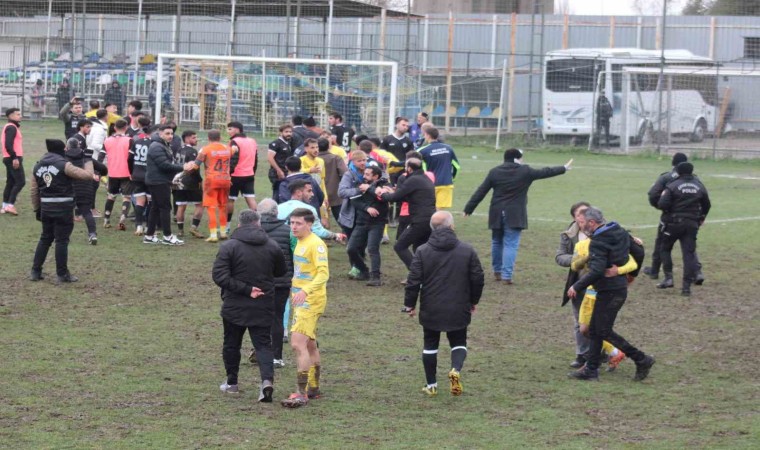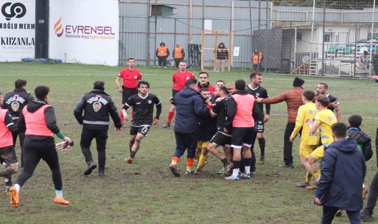 Konuk ekipten Emrullah Ertuş’un tepkisiyle başlayan sözlü, el kol hareketli atışma yedek kulübesine taştı. Ardından kaleci Mustafa Güngör’ün de dahil olmasıyla iki takımın sahadaki oyuncuları arasında kavga başladı. Teknik ekipler, yedek oyuncular ve yöneticiler de sahaya girdi. Tribünlerdeki taraftar da büyük tepki gösterdi ve gerilimin uzaması üzerine sahaya girmek istedi. Ancak emniyet güçleri sahaya inmelerine izin vermedi. Bu dakikalarda maçın hakemleri sahanın uzak bir bölgesine giderek emniyet güçlerinin koruması altına alındı.