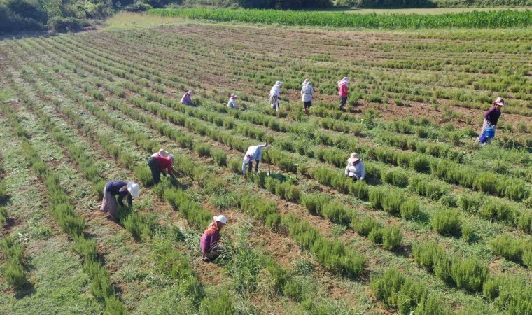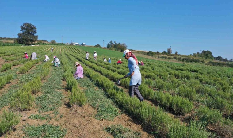 Kocaeli’de katma değeri yüksek tıbbi ve aromatik bitki üreticiliğini teşvik amacıyla ekilen tıbbi aromatik bitkilerden biberiyenin hasadına başlandı.