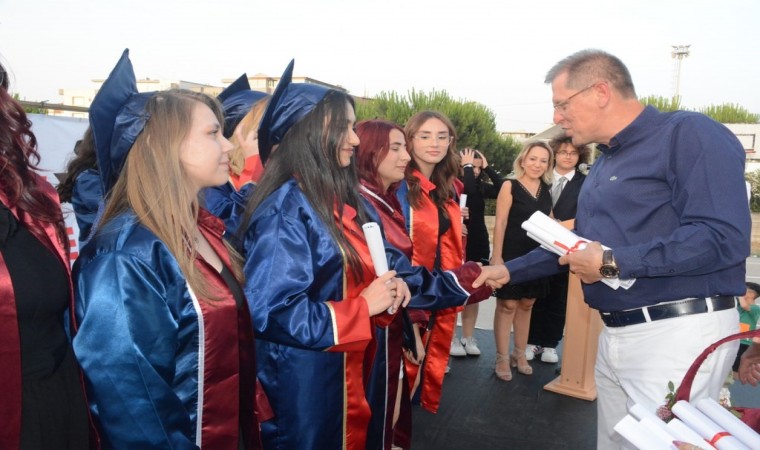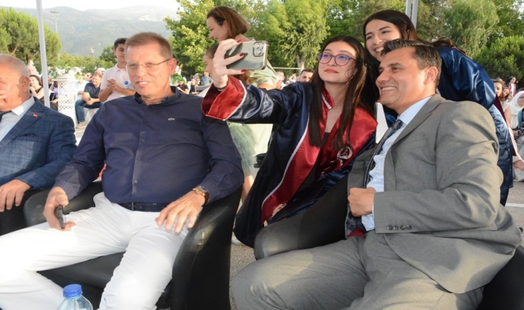 Törende Manisa Büyükşehir Belediye Başkanı Ferdi Zeyrek te öğrencilere seslenerek, Gazi Mustafa Kemal’in aydınlık geleceği olarak ifade ettiği öğrencilere üniversite yolculuğunda başarılar diledi. Konuşmaların ardından öğrencilere mezuniyet belgeleri, Büyükşehir Belediye Başkanı Ferdi Zeyrek, Manisa Ticaret Borsası Başkanı Sadık Özkasap ve programa katılan protokol üyeleri tarafından veridi. Tören renkli görüntülere sahne olurken, öğrenciler ve aileleri Büyükşehir Belediye Başkanı Ferdi Zeyrek ve Manisa Ticaret Borsası Başkanı Sadık Özkasap ile fotoğraf çektirerek günün anısını ölümsüzleştirdiler.