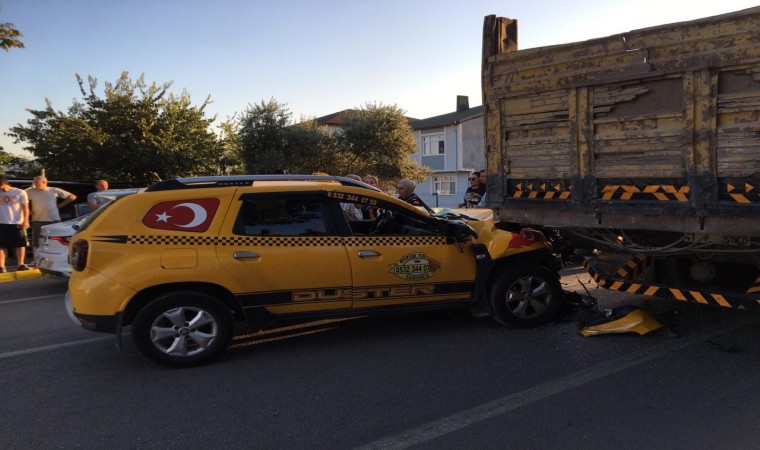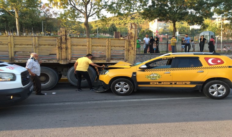 Kocaeli’nin Gebze ilçesinde ticari taksi, durağa yanaşmakta olan kamyona arkadan çarptı. Kazada taksi sürücüsü yaralanarak hastaneye kaldırıldı.