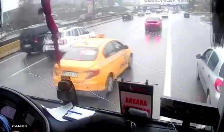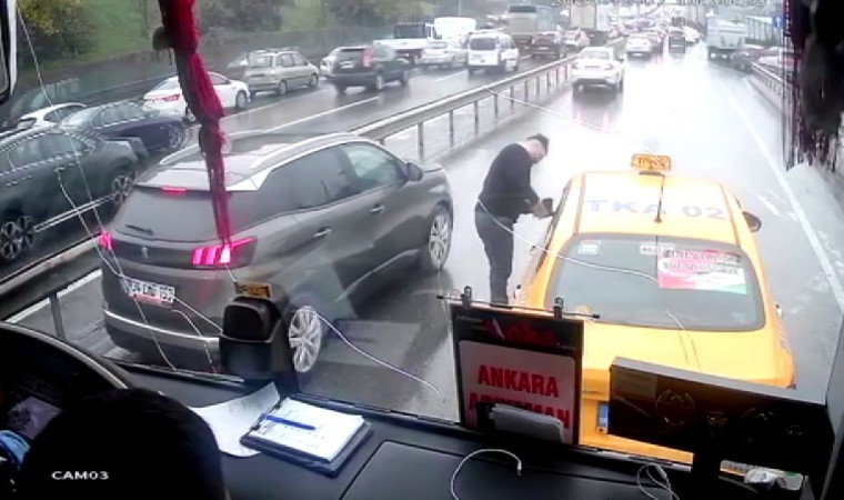 Adıyaman-İstanbul seferini yapan ve içerisinde 25 yolcunun bulunduğu yolcu otobüsünün bir ticari taksi şoförü tarafından kaza sonrası taciz edilmesi kameralara yansıdı.